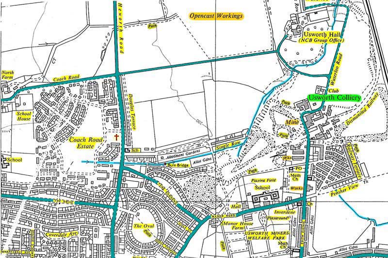 [ 'The Burn' runs under Heworth Road between the road junction and High Row. See Map below. ]