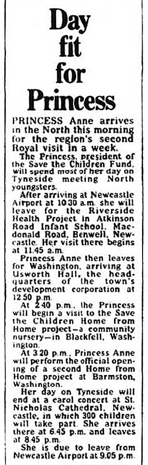 Princess Anne visiting Washington to officially open the Town Centre and the Princess Anne Park.