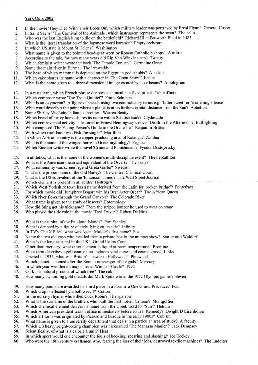 MY SUMMER QUIZ - YORK 2002