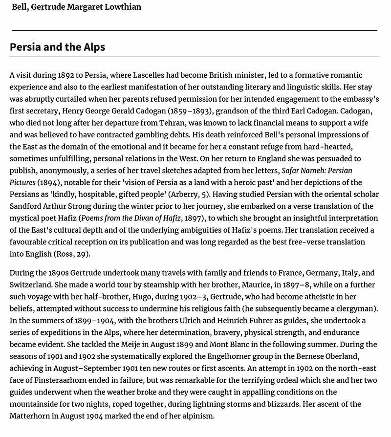 Thank's to Dr Lukitz and Oxford Dictionary of National Biographies for posting Miss Bell's Biography as a Free