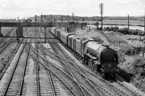On Sundays in the late 1950s / early 1960s, rail traffic was regularly diverted from the North-East main line (which crossed Chester-le-Street Viaduct) onto the Leamside Line, which passed over the Victoria Viaduct and through Washington & Usworth Stations. This allowed maintenance work to be carried out on the main-line and gave Washington residents the opportunity to see some famous steam engines in action. The above map shows where dozens of young lads used to congregate, in the fields east of Pensher View and Railway Terrace, to watch these magnificent machines pass by. Football games would be temporarily suspended when an approaching train was spotted in the distance, especially at the cry ... "It's a Streak!"