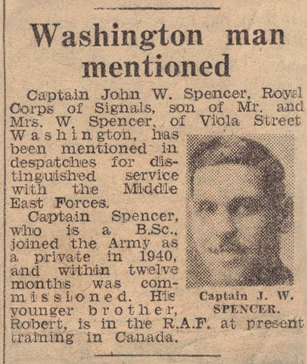 The images and information in this article were provided by David Gibson, son of Joseph Gibson, Captain Spencer's life-long Secondary School Pal.